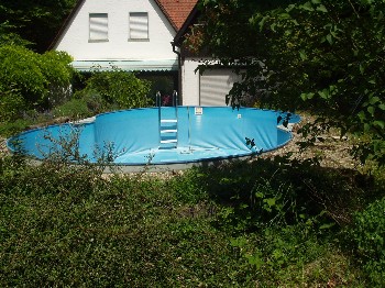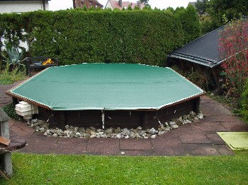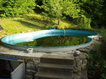 Das alte Stahlwand-Oval-Becken und die Filteranlage haben nun ausgedient.